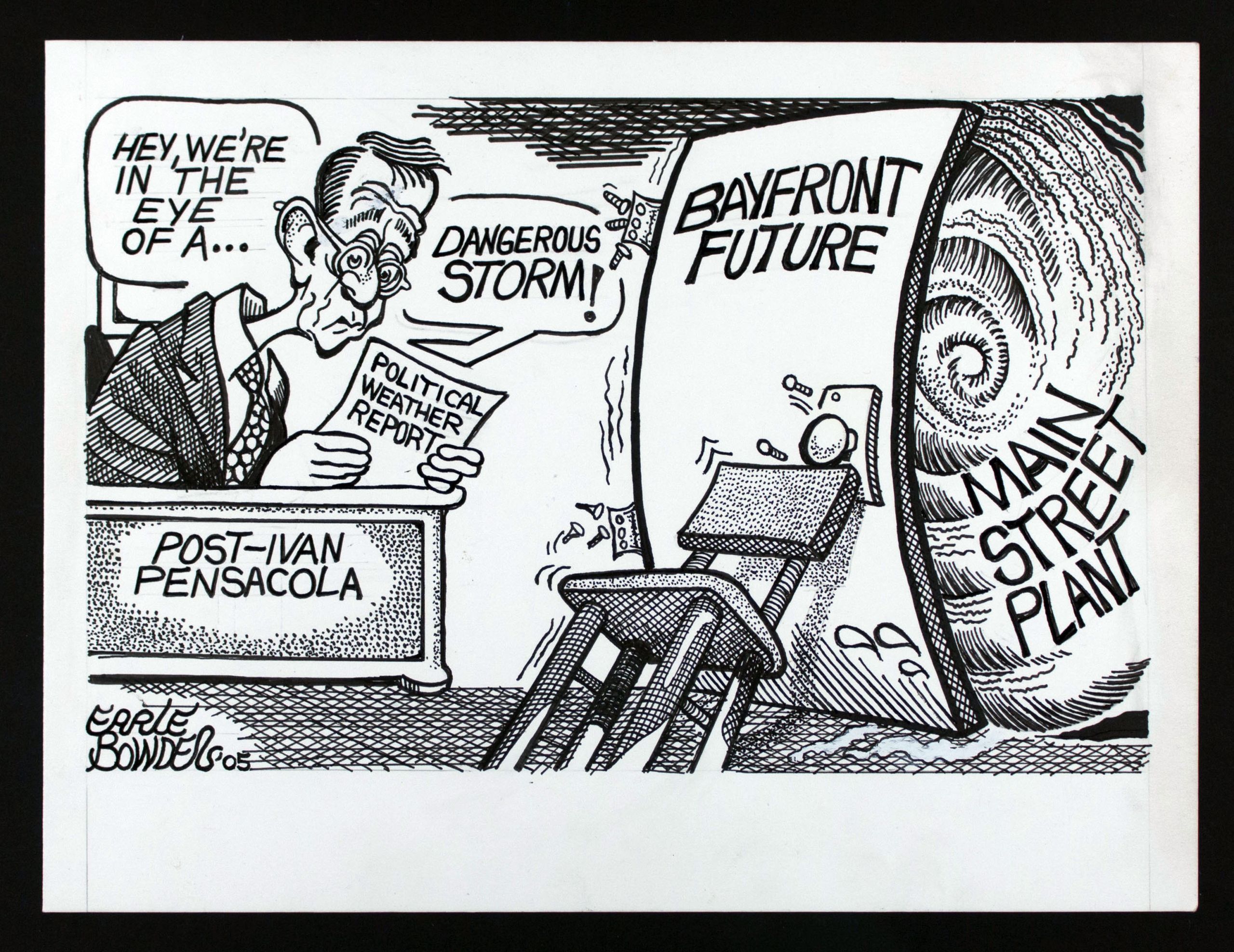 | Description/Context: | Accompanying the editorial cartoon ‘Speed is of the essence in moving sewage plant’ noting the political pressure to move the Main Street sewage plant in order to improve the Bayfront as well as to prevent its failure by a coast-hitting hurricane. |
