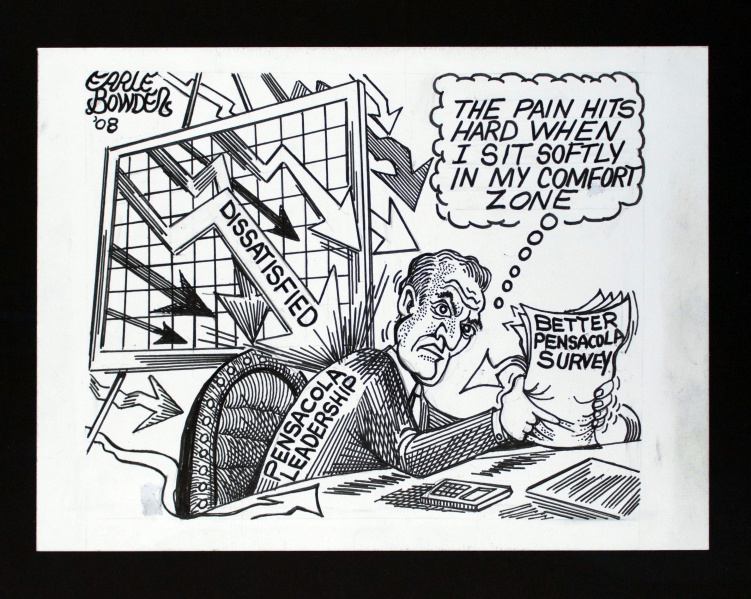 | Description/Context: | Accompanying the editorial ‘Excuses won’t get it done’ noting the results of the recent Mason-Dixon survey for the Better Pensacola Forum that showed widespread dissatisfaction of city leadership. |